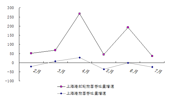 图1 2013年1-7月上海港旅客吞吐量与邮轮旅客吞吐量增速 单位:%