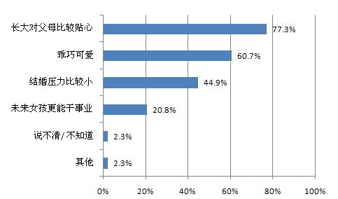 3.喜欢女孩主要是认为女孩长大对父母比较贴心