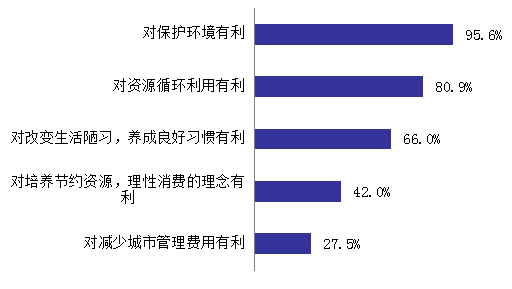 调查显示,市民不愿意进行垃圾分类的主要原因是“没有分类装运”。调查100个居委小区垃圾收运情况,47个居委小区“垃圾完全分类运输”,26个“建筑垃圾单运,其他垃圾混装运输”,23个“部分垃圾(有毒有害、废旧衣服)分类运输,其他垃圾混装运输”,另有4个居委小区“垃圾完全混装运输”。
