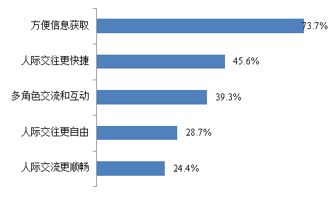 新媒体对人际交往的积极影响排列前三位的分别为:“方便信息获取”,“人际交往更快捷”以及“多角色交流和互动”(见图2)。