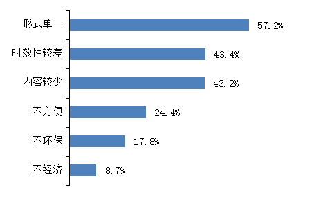 传统媒体发展面临的前三位问题是:“形式单一”、“时效性较差”以及“内容较少”(见图5)。