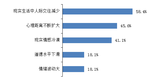 新媒体对人际交往的消极影响排列前三位的分别为:“现实生活中人际交往减少”、“心理距离不断扩大”以及“现实情感冷漠”(见图3)。