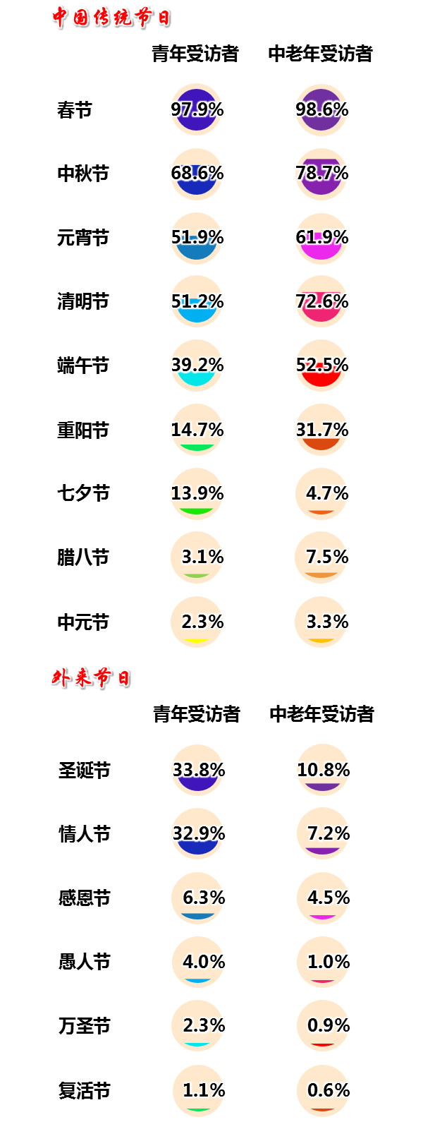 图6 对各类节日重视的受访者比重