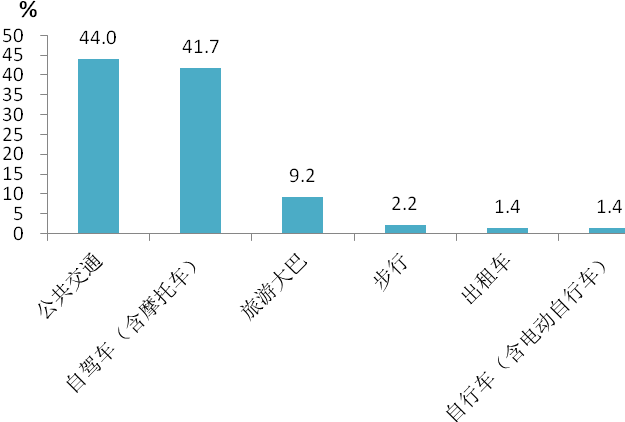调查显示,44.0%的受访市民在市内旅游时选择公共交通方式出行, 41.7%的受访市民选择自己驾车方式出行。显示方便快捷的公交系统和市民生活水平提高,增强了市民市内旅游的意愿(见图3)。