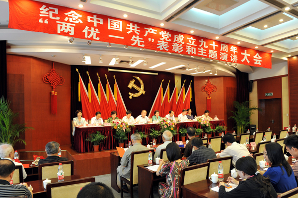 上海统计网 2011-06-306月29日下午,市局总队纪念中国共产党成立90周年大会暨两优一先表彰和主题演讲大会在统计资料中心隆重举行。市局党组书记、副局长龚梅华同志出席大会并讲话,副局长、机关党委书记朱章海同志主持大会,副总队长、机关党委委员刘稚南同志宣读《关于表彰先进党支部、优秀共产党员和优秀党务工作者的决定》,市局和总队领导吴铭、蒋蔚超、杨莉、戎鲤城、吴展敏、岳钢、张严出席大会。到会的市局总队领导为获表彰的两优一先集体和个人颁奖。