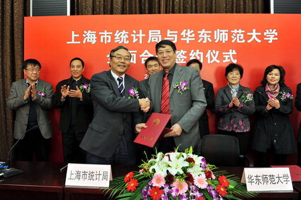 11月25日,市统计局与华东师范大学签订了全面合作意向书,局长王志雄和华东师范大学校长俞立中代表双方签约。市局总经济师严军、总队副总队长吴展敏参加了签约仪式,华师大副校长陈群主持签约仪式。