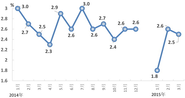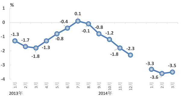 从市场价格看,居民消费价格温和上涨,一季度,居民消费价格比去年同期上涨2.3%,涨幅同比回落0.4个百分点。其中,服务项目类价格上涨2.2%;消费品价格上涨2.4%。八大类商品价格“六升二降”。其中,衣着类价格上涨14.5%,涨幅居首,上拉居民消费价格上涨1.0个百分点;居住类价格上涨3.1%,上拉居民消费价格上涨0.7个百分点。工业生产者价格降幅扩大。一季度,工业生产者出厂价格比去年同期下降3.4%,降幅同比扩大1.8个百分点;工业生产者购进价格下降9.1%,降幅扩大4.6个百分点。