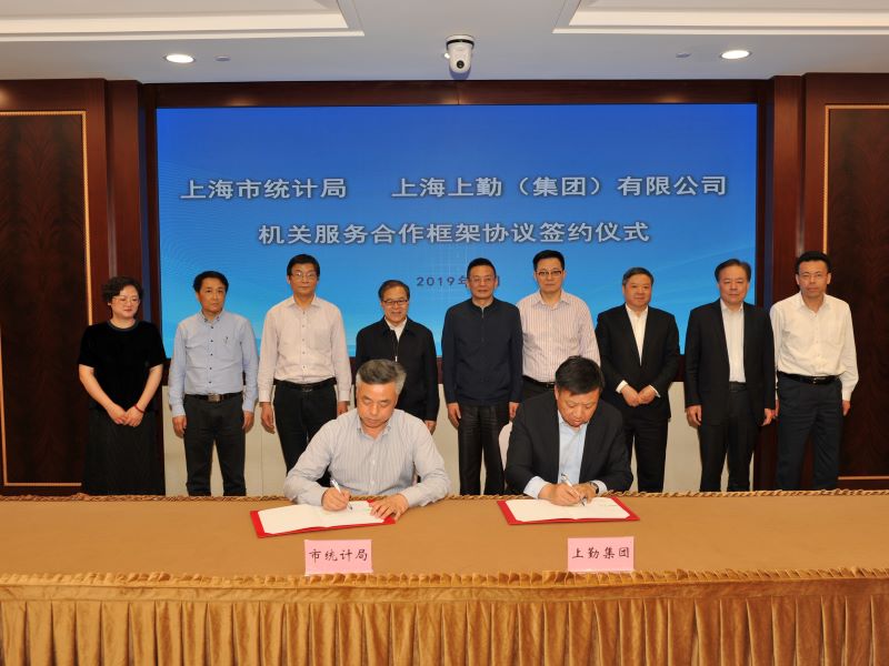 admin 2019-06-055月25日,上海市统计局、上海市机关事务管理局及下属上勤集团在市政府会议厅举行简单而隆重的签约仪式。正式签订了《上海市统计局 上海上勤(集团)有限公司 机关服务合作框架协议书》,出席签约仪式的双方领导有:市统计局局长周亚、副局长肖永培及相关处室领导,市机关事务管理局局长倪一飞、副局长陆清冬及上海上勤(集团)有限公司董事长黄国平等领导。会议由上海上勤(集团)有限公司董事长黄国平主持,上海市统计局周亚局长、上海市机关事务管理局倪一飞局长在签约仪式上分别作了讲话。