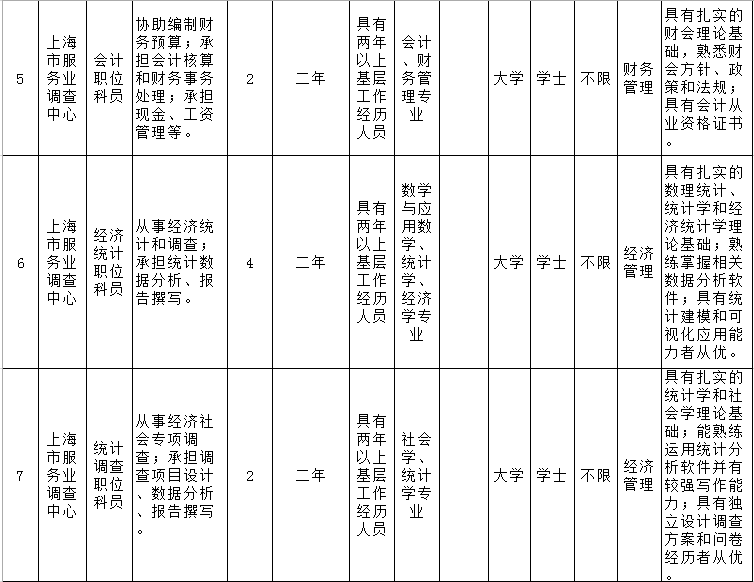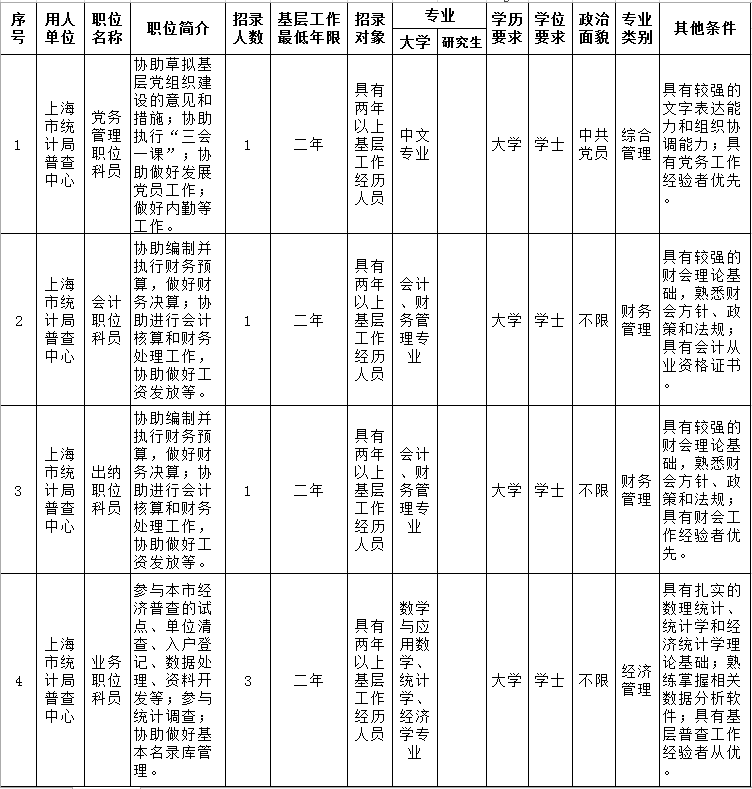 上海市统计局及所属事业单位2019年公务员(参公人员)录用职位简章