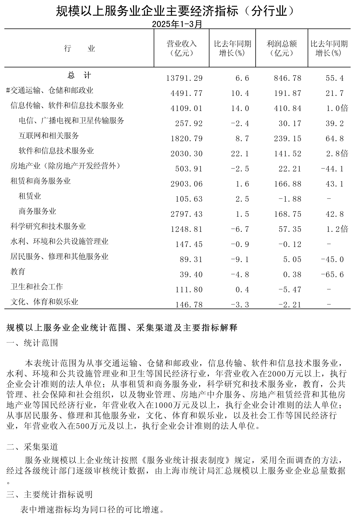 2025年1-3月规模以上服务业企业主要经济指标(分行业)